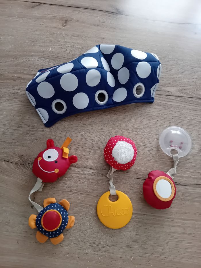 Accessoire jouets poussette Chicco, très bon état. Le cache est à scratchs ainsi que chacun des jouets.