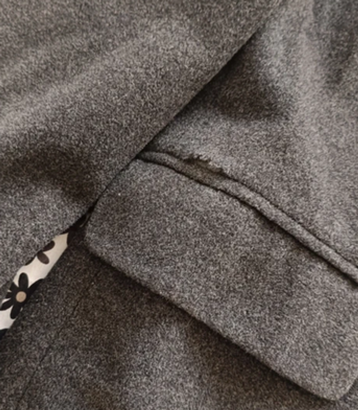 Taille 46 mais convient mieux pour un 42/44 pour le mettre avec un gros pull Petit défaut poche