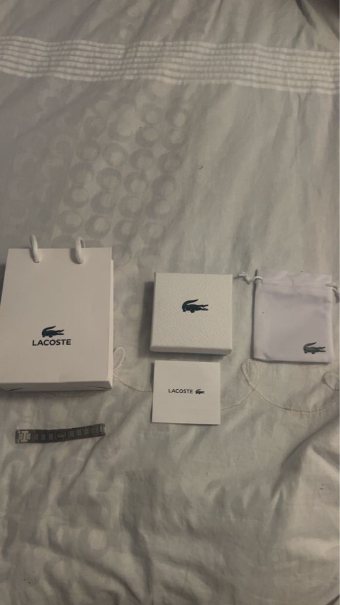 Bracelet Lacoste tout neuf jamais porter avec sa boîte le petit pochon le bracelet le petit sac qui va avec et son étiquette.