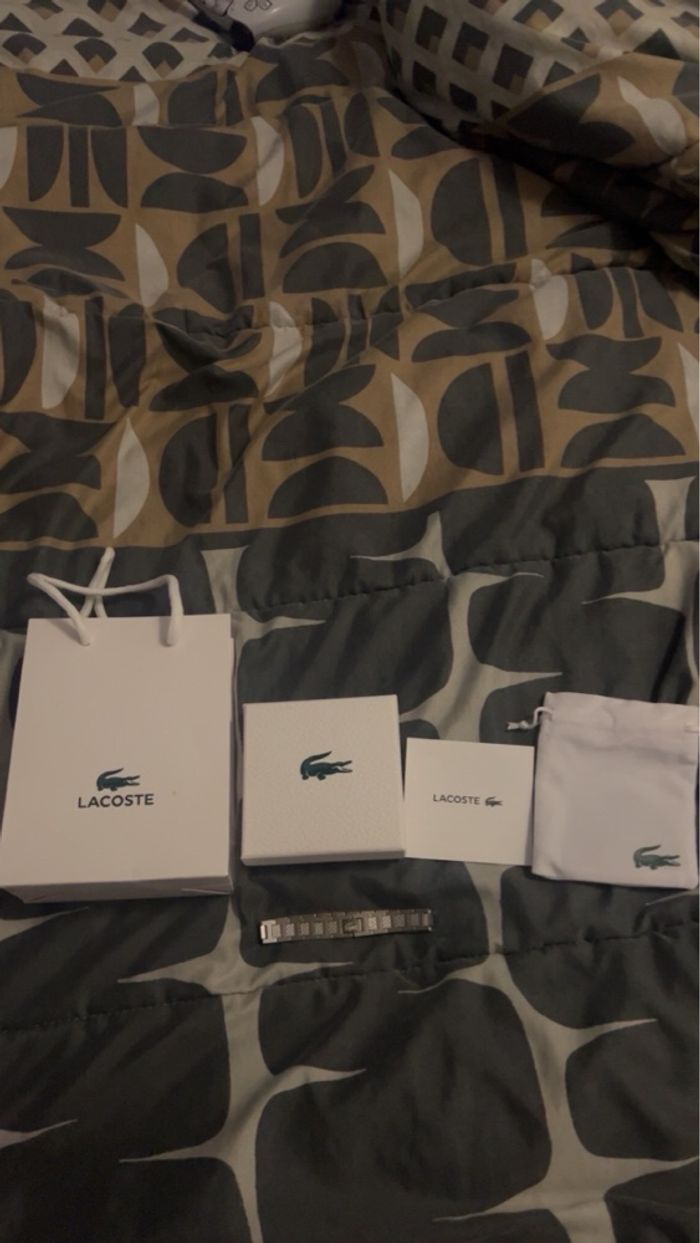 Bracelet Lacoste tout neuf jamais porter avec sa boîte le petit pochon le bracelet le petit sac qui va avec et son étiquette.