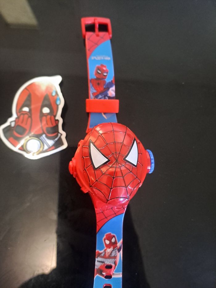 Un montre spiderman avec projecteur des photos à 8,50€,article est neuve dans son emballage. Livraison rapide et soignée.