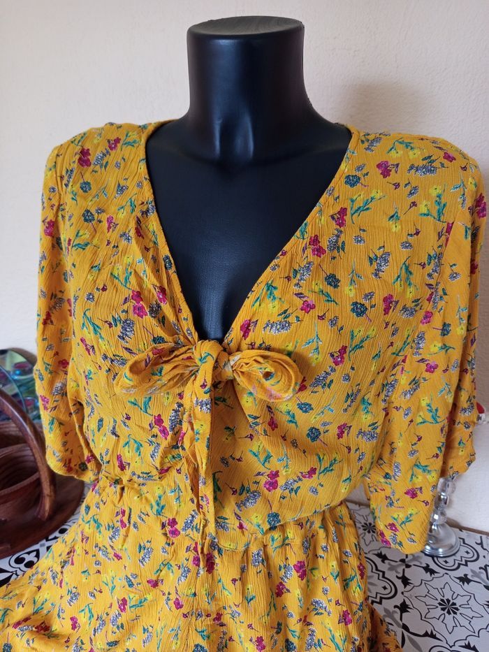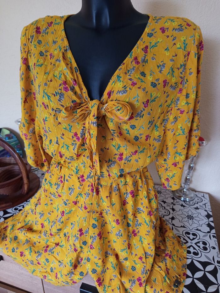 Combishort jaune manches courtes en gaz de coton femme XL - Promod 🎀