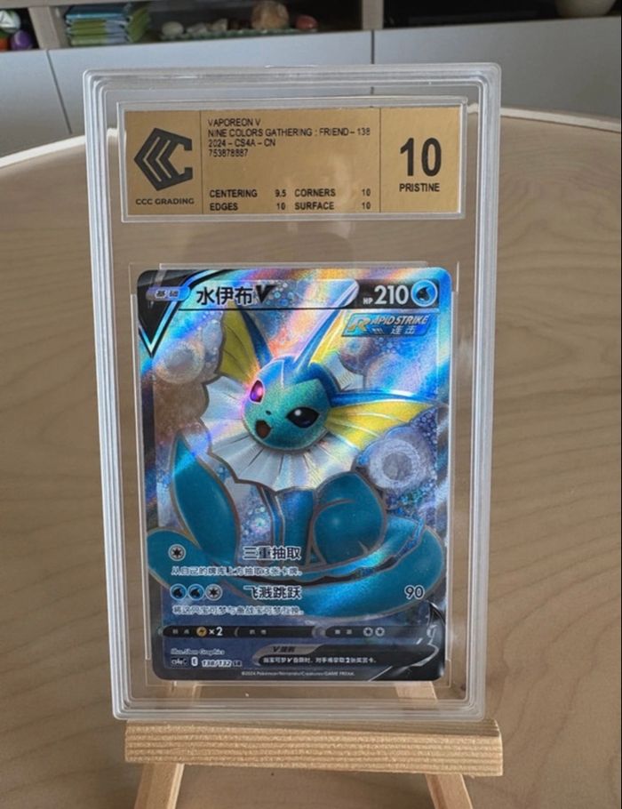 Bonjour, Je vends cette carte Pokémon de Vaporeon (Aquali) SR 138/132 - CS4A (Evolution Celeste) Gradée 10 pristine par CCC Grading gold label N’hésitez pas à consulter mon profil :)