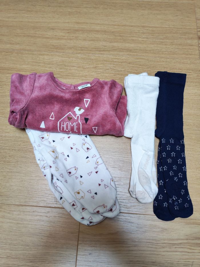 Lot fille 3 mois comportant 4 brassières et 1 poncho à capuche, 8 hauts à manches longues, 3 jeans et 3 joggins, 1 pyjama et 2 collants, 1 ensemble, 1 salopette et 1 robe avec collant fin. Le tout en très bon état. Différentes marques type Kiabi, Gémo, Marèse, Tape à l'oeil, Obaibi, Pat et Ripaton.