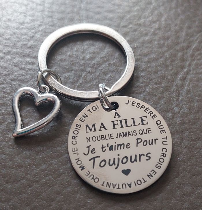 Porte clé en acier inoxydable hommage "A ma fille" de couleur argent avec breloque coeur Diamètre 3cm Neuf