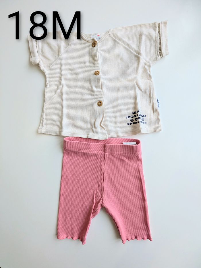 Vends un magnifique ensemble deux pièces pour petite fille, idéal pour un look à la fois décontracté et soigné ! 🌸 Le lot comprend : 👚 1 Haut à manches courtes beige : style gilet avec de jolis boutons en bois sur le devant, un col rond et une petite inscription discrète en bas. (Marque : Galaxie) 🩳 1 Cycliste rose corail : coupe confortable en maille côtelée avec une taille élastiquée pour un maintien parfait. (Marque : Kiabi) ✅ État : Très bon état. 📏 Taille : 18 mois (81 cm). 🌿 Matière : Bas en coton issu de l'agriculture biologique. 🎁 Réductions sur les lots ! Remises automatiques appliquées : -5% dès 2 articles 🏷️ -10% dès 3 articles 🏷️ -15% dès 4 articles 🏷️