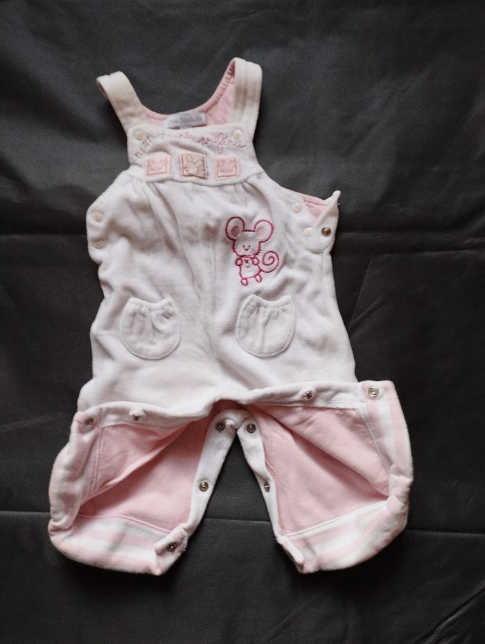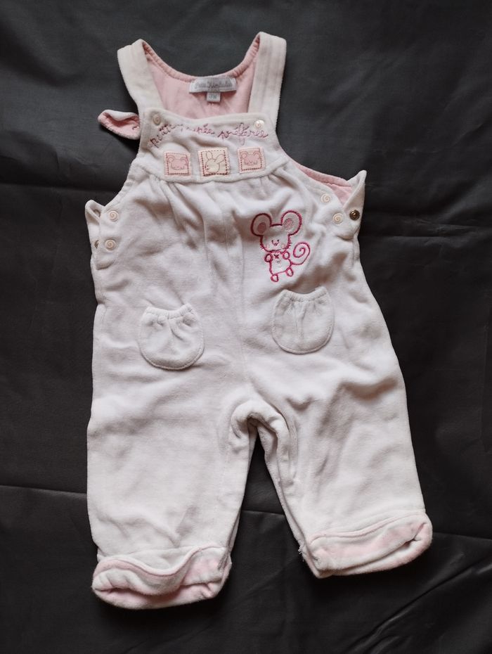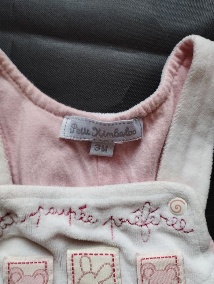 Salopette en velours rose pâle fille bébé Pression au niveau des jambes (voir photo n°2) -> Marque : Petit Kimbaloo -> Taille : 3 mois