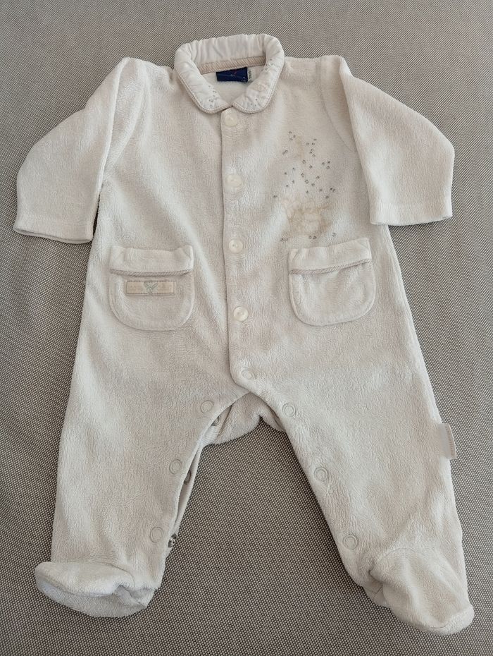 Pyjama en velours blanc motif girafe avec ouverture par devant de marque Noukie’s