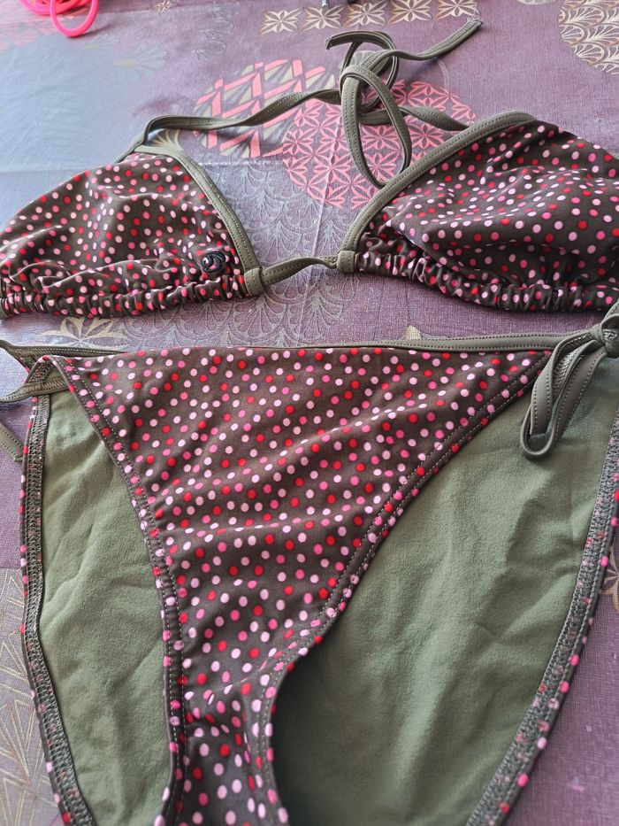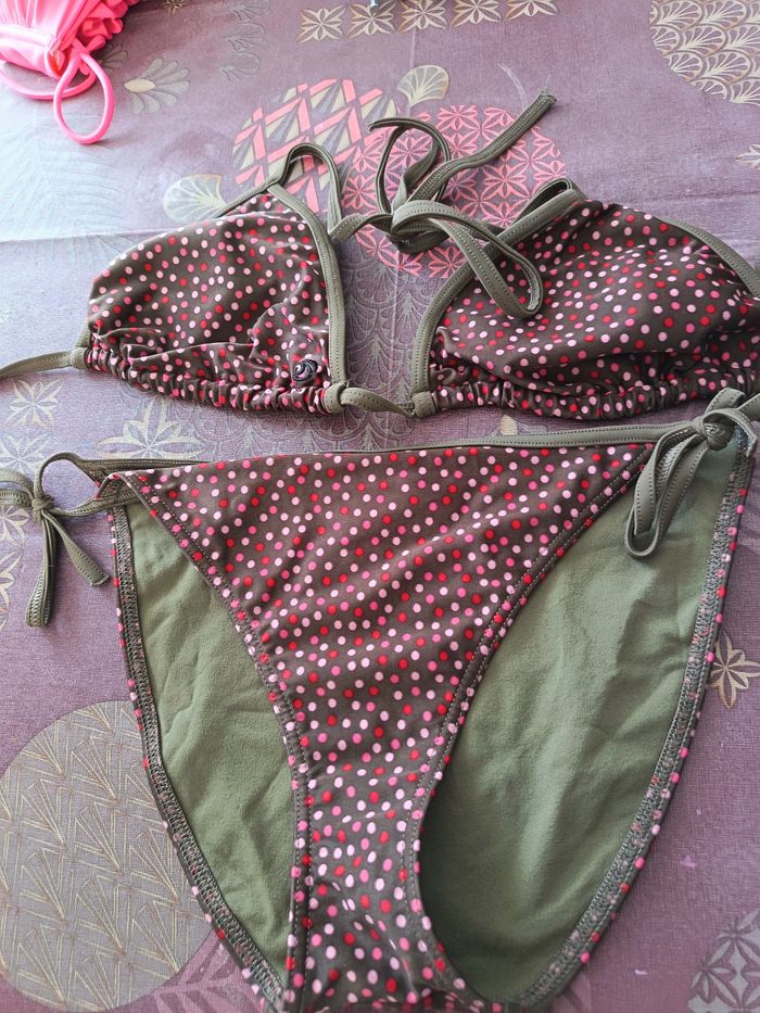 Maillot de bain vert a pois rose et rouge Très peu porté