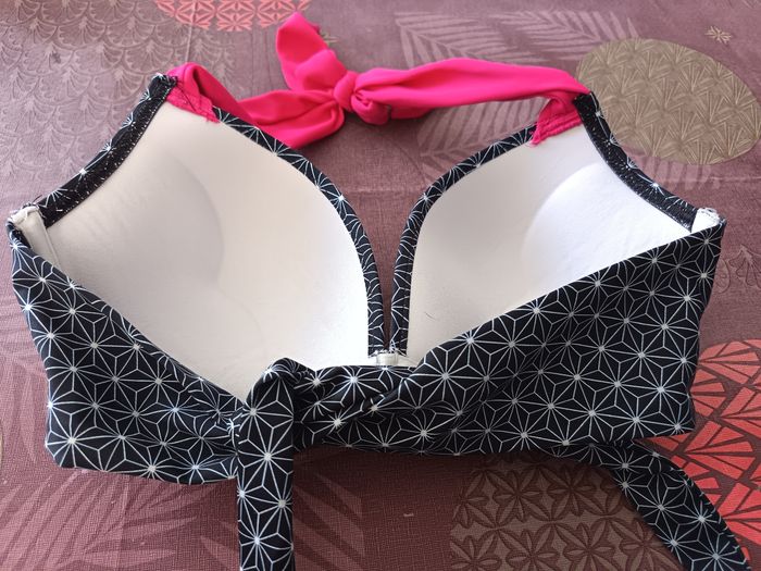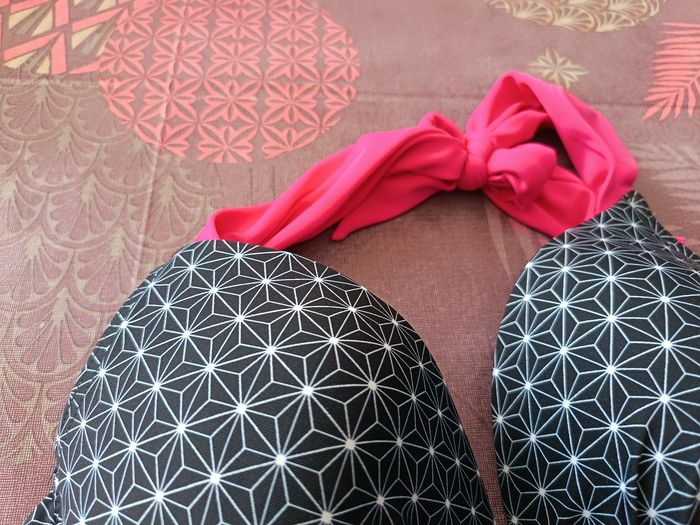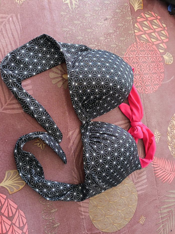 Haut de maillot de bain double serrage et serrage rose au cou.. Très peu porté