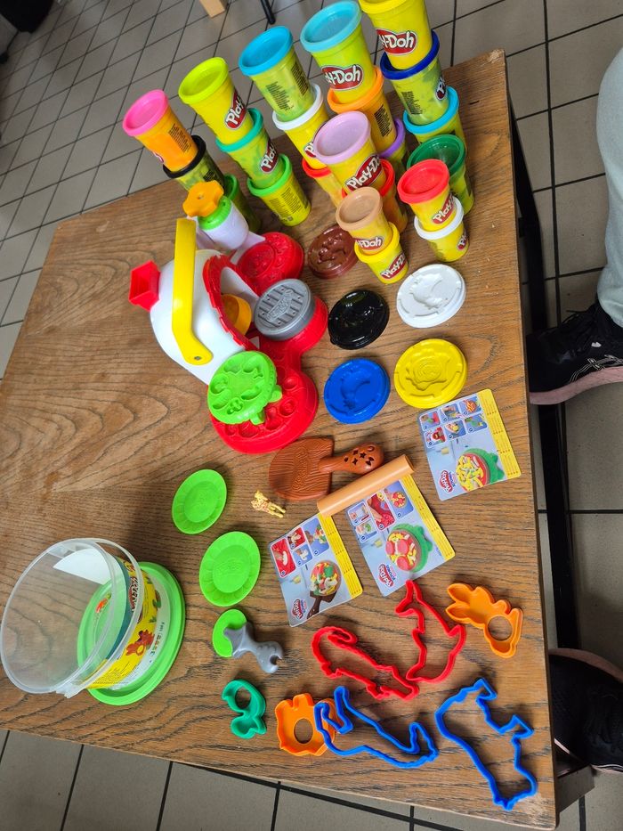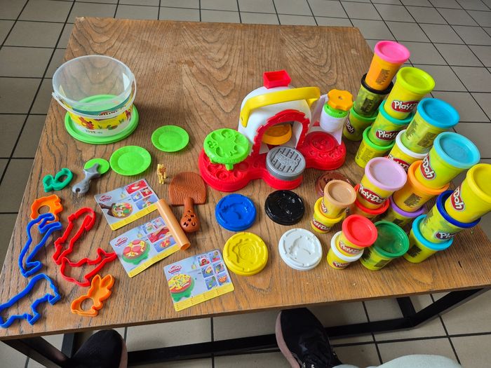 Je vends 24 pots de pate a modeler + modele animaux + kitchen creation pizza