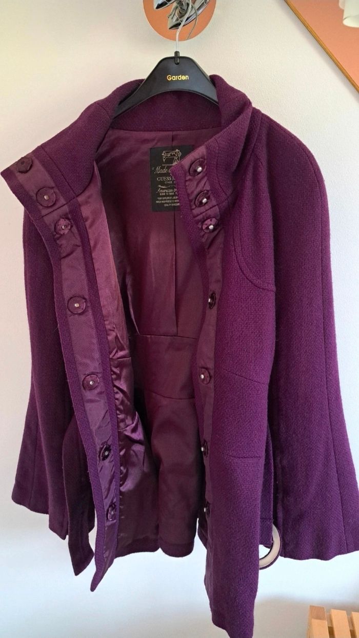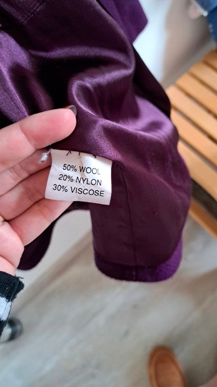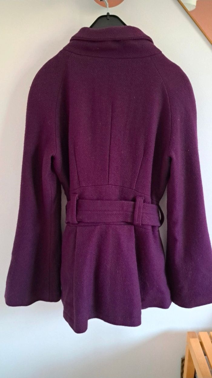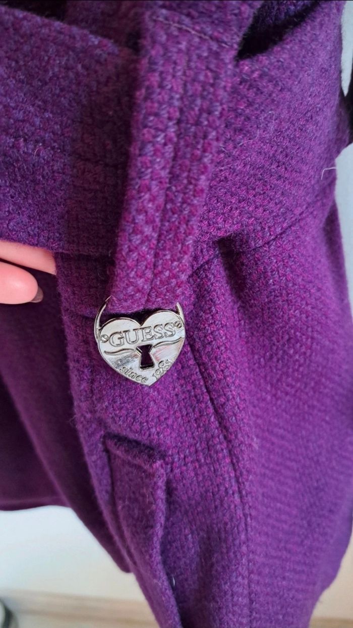 Manteau court violet Marque Guess L'étiquette de taille n'y est plus mais il va a un 36 Doublure intérieure en bon état (pas de déchirures mais de l'usure) Coté extérieur en parfait état 50% de laine Largeur épaules : 44cm Largeur aisselles : 45cm Longueur col compris : 80cm