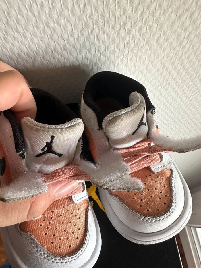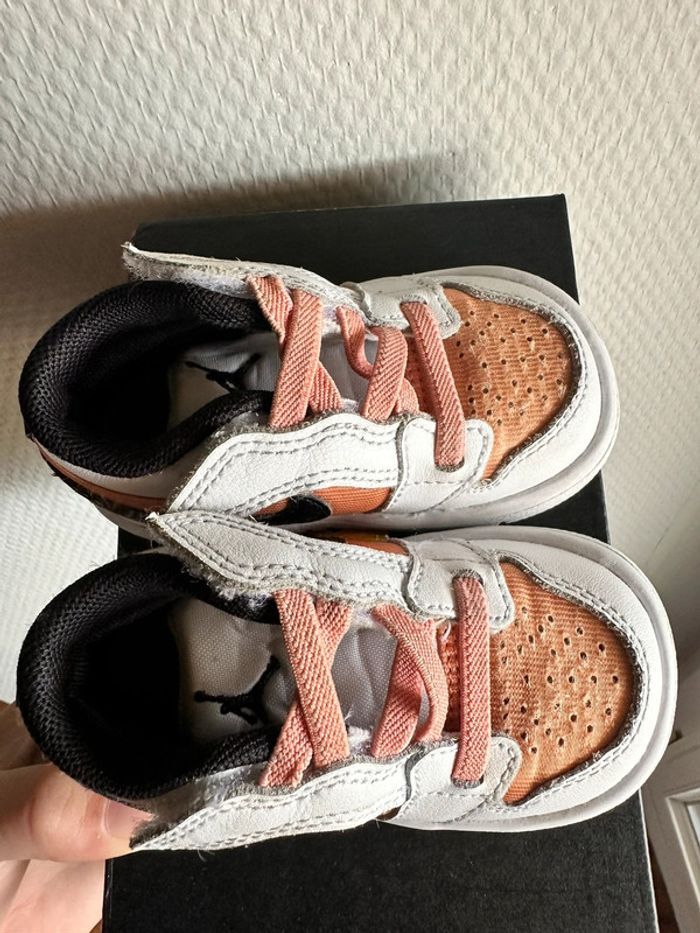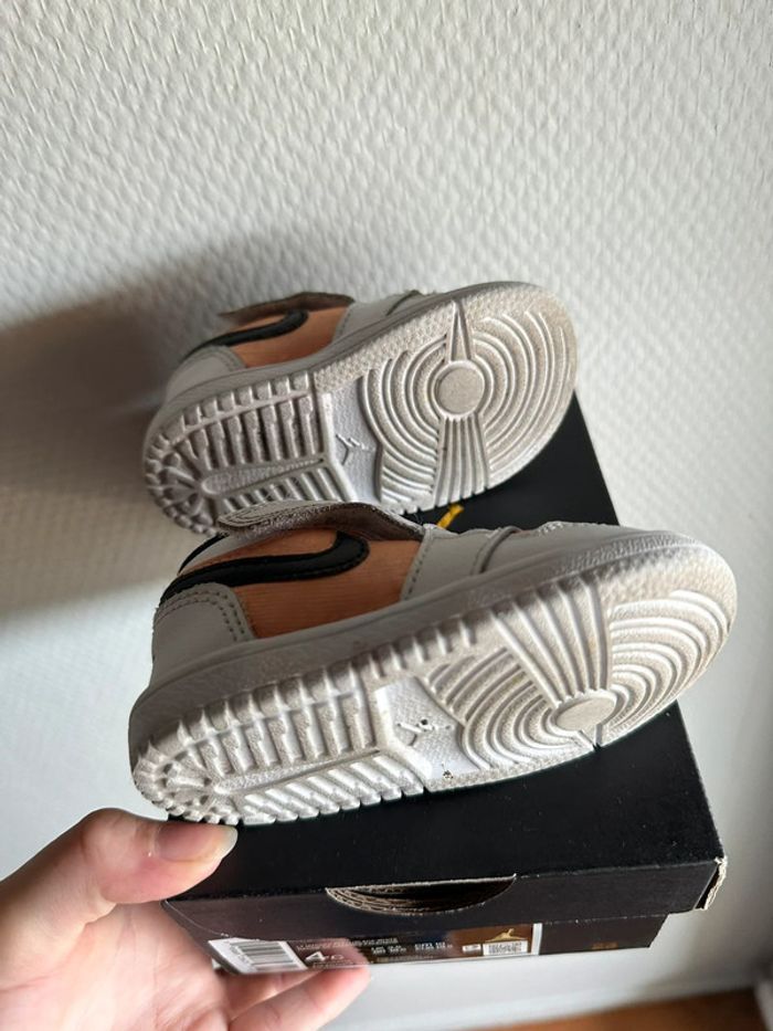 Basket/ Sneakers Jordan 1 low white and Light Madder Root' ( rose saumon et blanc). Très bon état ou bon pour certains. la languette et lacet taché, je peux essayé de les détacher. Taille 19,5 / 4 us Réf: DM8967-801 Acheté : 59,99€ sur Nike