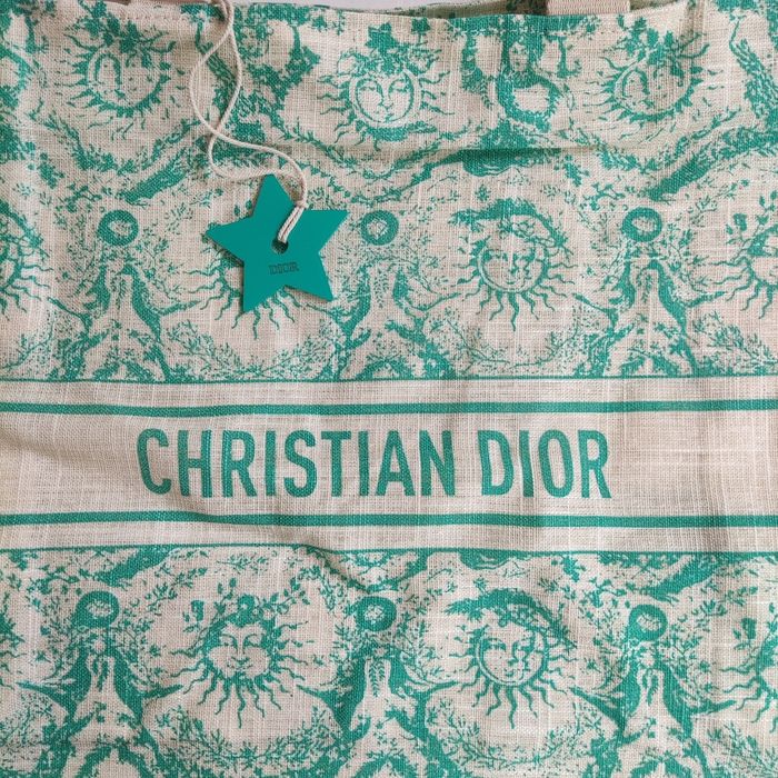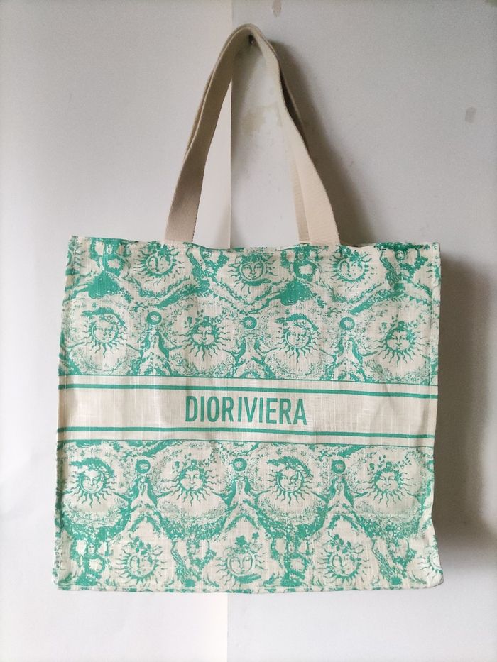 Sac Cabas Fourre-tout Dior Dioriviera Sac en lin Écru et vert Neuf