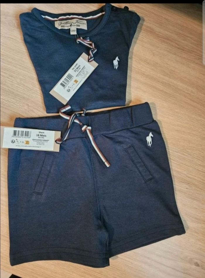 Neuf avec étiquette. Short 18 mois, haut 23 mois, détail sur les photos. Lot et prix possible sur l'ensemble du dressing.