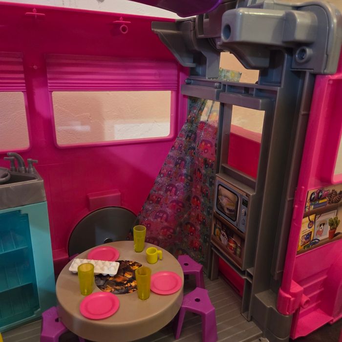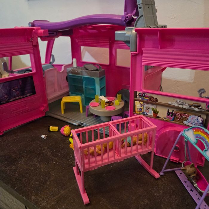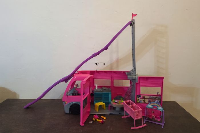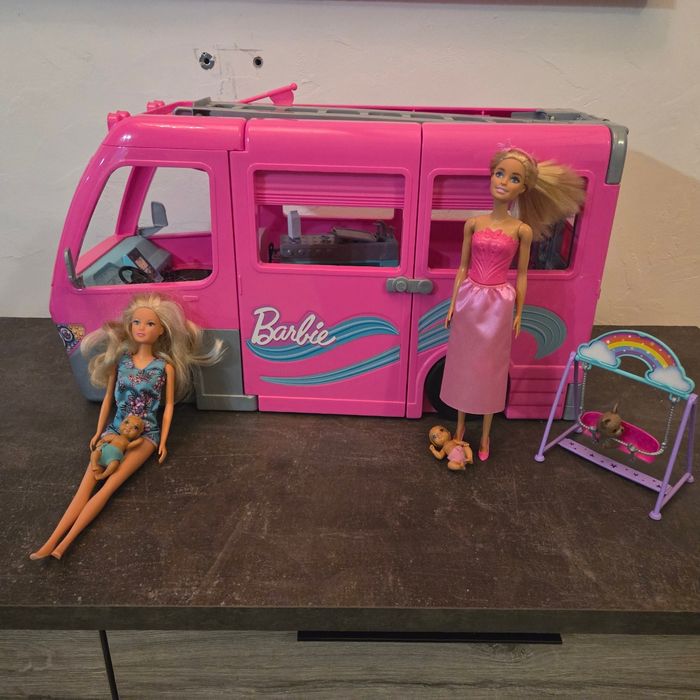 Vend camping car barbie avec ces barbies et accessoires. Bon état