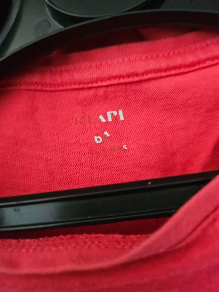 T-shirt manches courtes rose orangé avec imprimés étoiles en forme de tête. Marque : Kiabi Taille: 6 ans