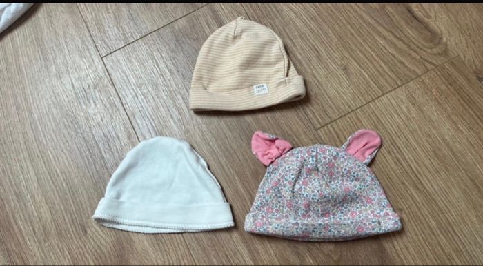 Lot de trois bonnets de taille naissance à un mois