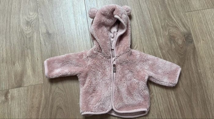 Manteau rose, tout doux tout chaud Zippé à l’avant Oreilles de nounours sur la capuche Porté plusieurs fois, mais en très bon état Taille 1 mois