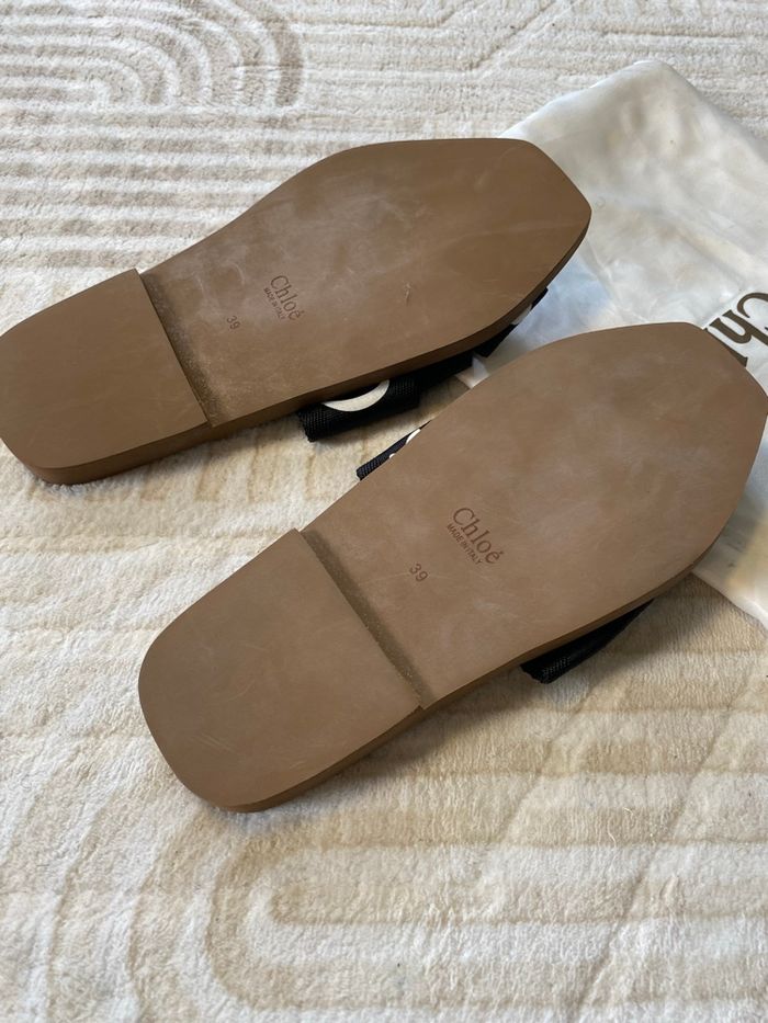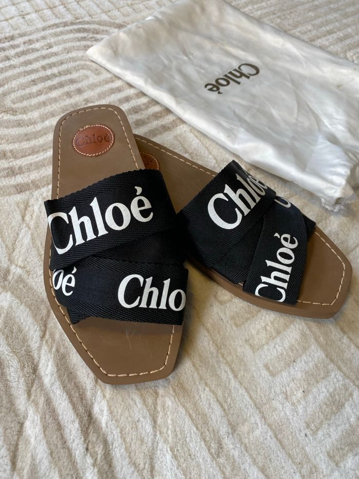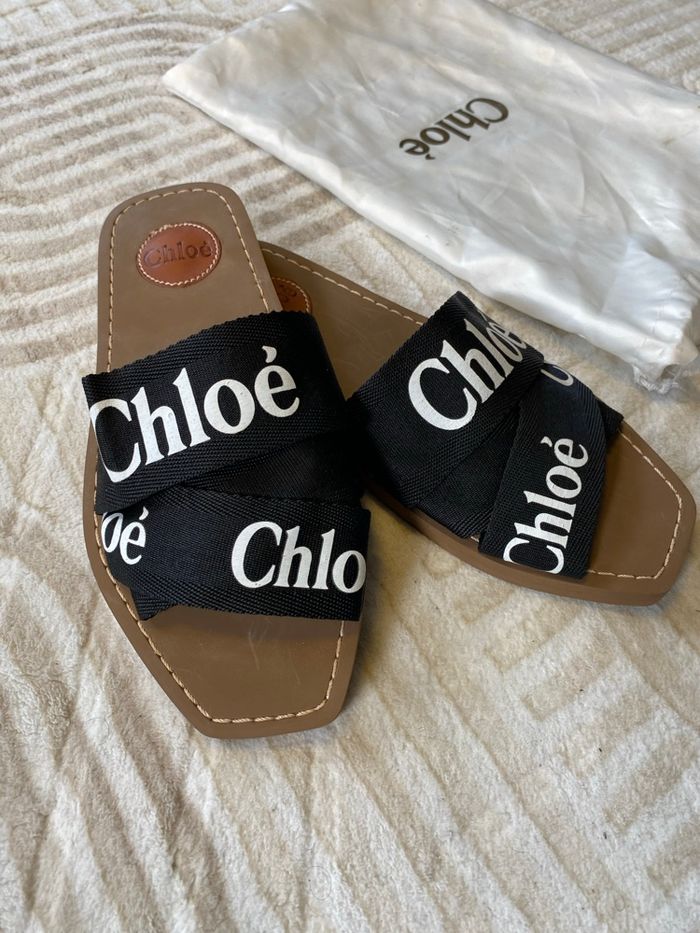 Je vends mes sandales Chloé noires, pointure 39. Elles ont été portées mais restent en très bon état ! La pochette d’origine est légèrement effilochée et présente quelques traces qui partent à l’eau. Pochette d’origine incluse. prix de base: 390€