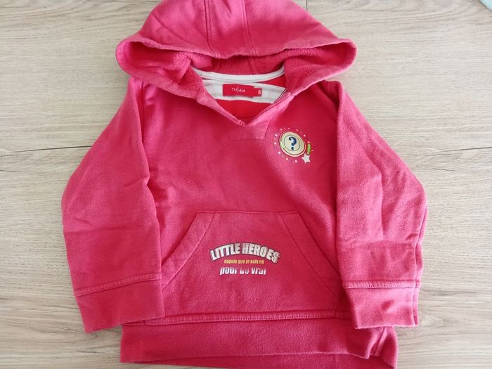 Pull garçon à capuche et poche centrale, porté quelques fois.