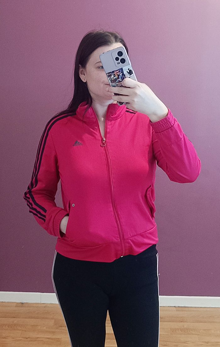 Veste rose fushia rayures Adidas noir taille S 😁 Pour plus d'articles vous pouvez cliquer sur mon profil 🤓