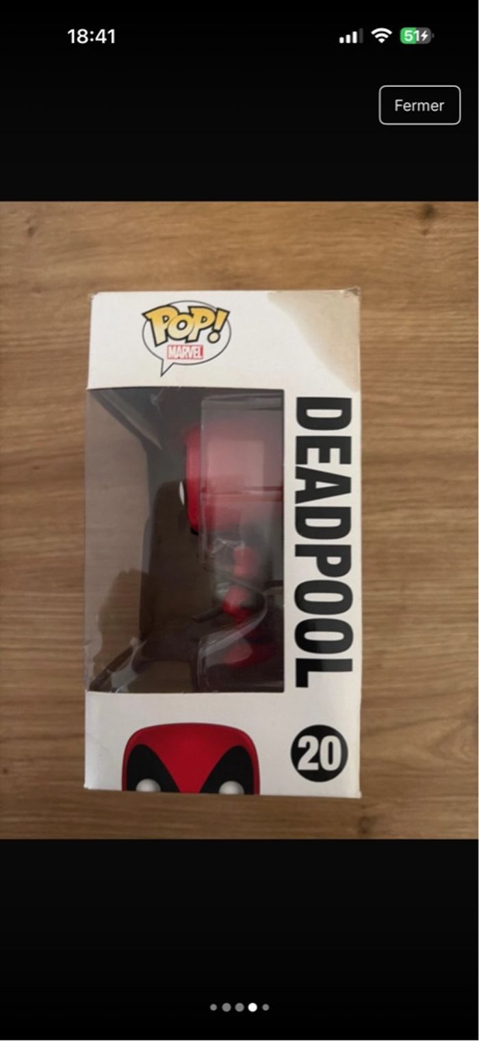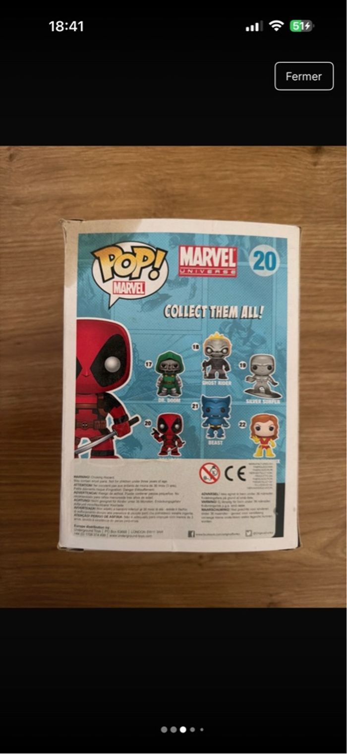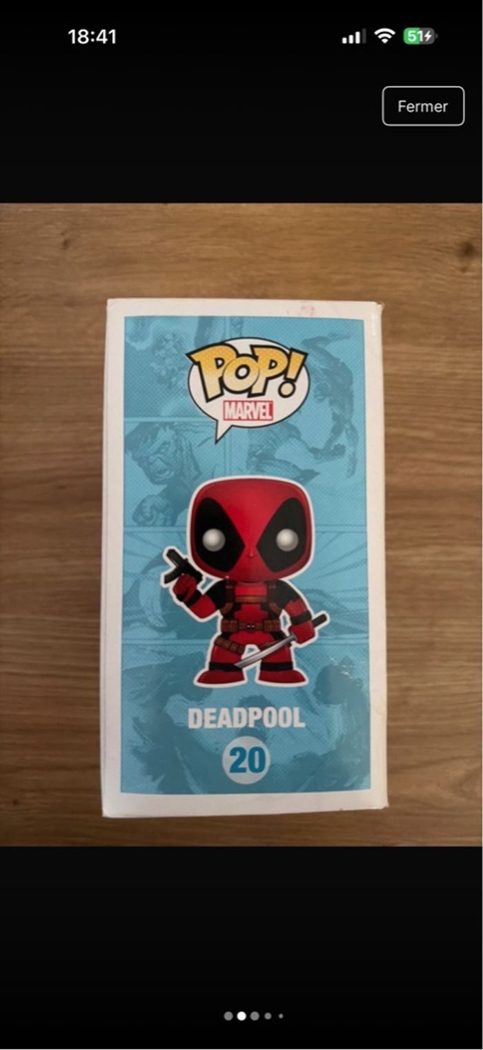 pop marvel Deadpool numéro 20 hauteur 15 cm Boîte légèrement abimé sur le coin