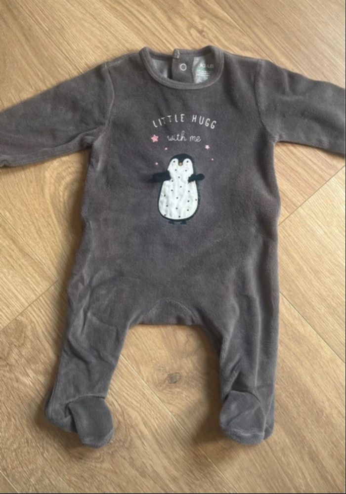 Pyjama gris Pingouin Pression à l’arrière Taille 3 mois Marque Kiabi Porté régulièrement mais en très bon état