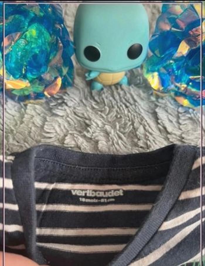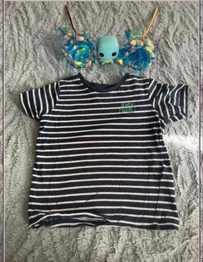 joli t-shirt à manches courtes pour petit garçon de la marque Vertbaudet. • Motif : Rayures horizontales bleues marines et blanches (style marinière). • Détail : Inscription "Se voir en GRAND" brodée en vert sur la poitrine. • Taille : 18 mois (81 cm). • État : Très bon état, bien entretenu. Parfait pour un look décontracté et mignon cet été ! ☀️