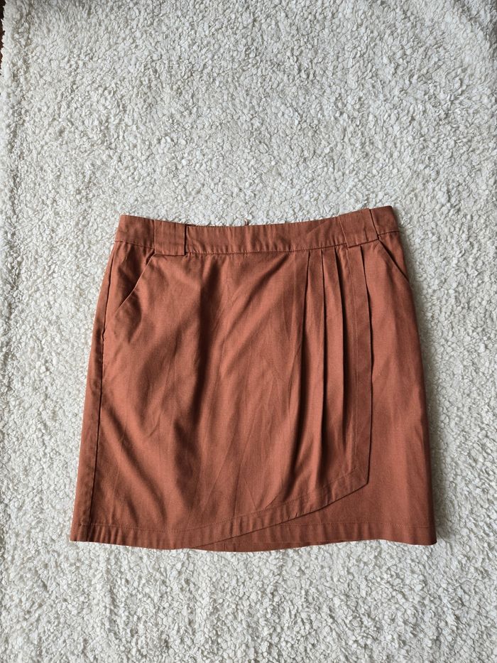 jupe en coton, poches laterales, belle qualité, couleur brique. ⚘️Longueur 46 cm ⚘️Largeur taille 38 cm ⚘️Largeur anches 52 cm