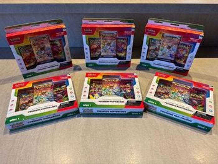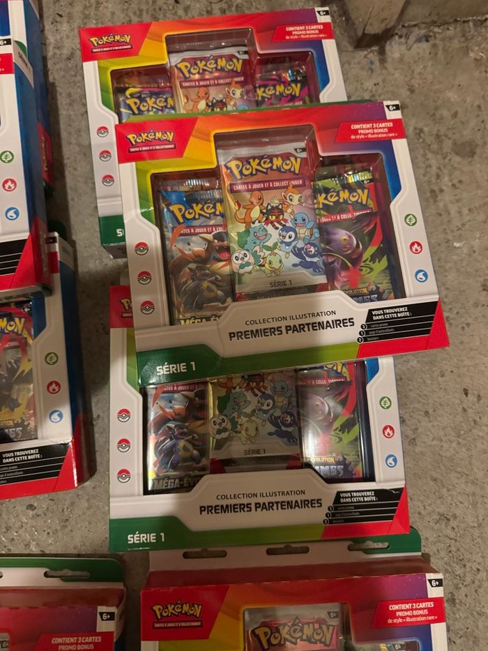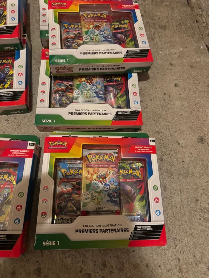 ANNONCE RESA Bonjour, Je vends un lot de 12 coffrets Pokémon Premiers Partenaires. Certains coffrets ont des défauts d’origines et d’autres sont nickels. - Prix à l’unité : 30€ - Prix du lot de 6 : 165€ soit 27,5€/coffret - Prix du lot de 12 : 318€ soit 26,5€/coffret Colis envoyé dans un carton et papier bulles. Envoi filmé et pesé. Possibilité de trade Pokémon scellé 151, Célébrations 25 ans, EV10