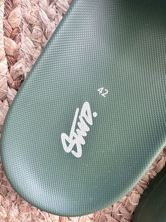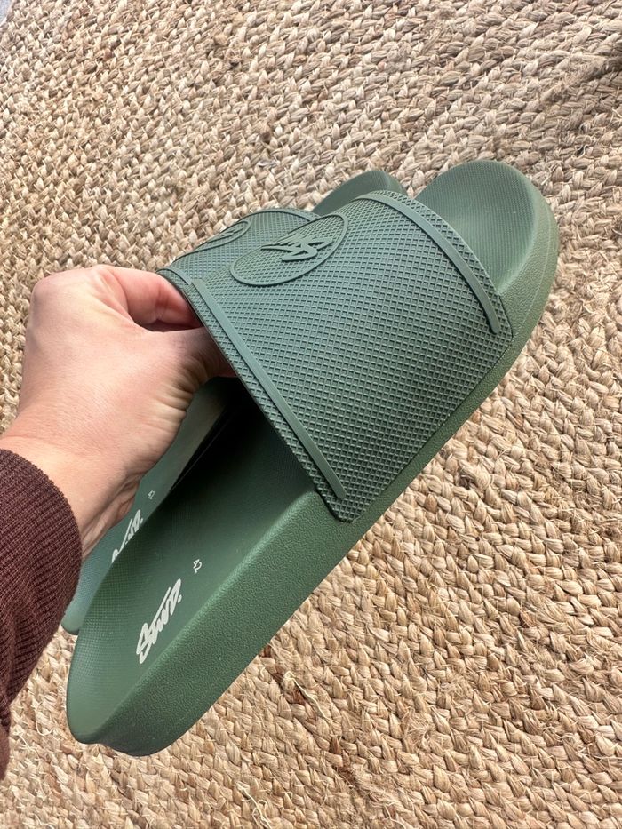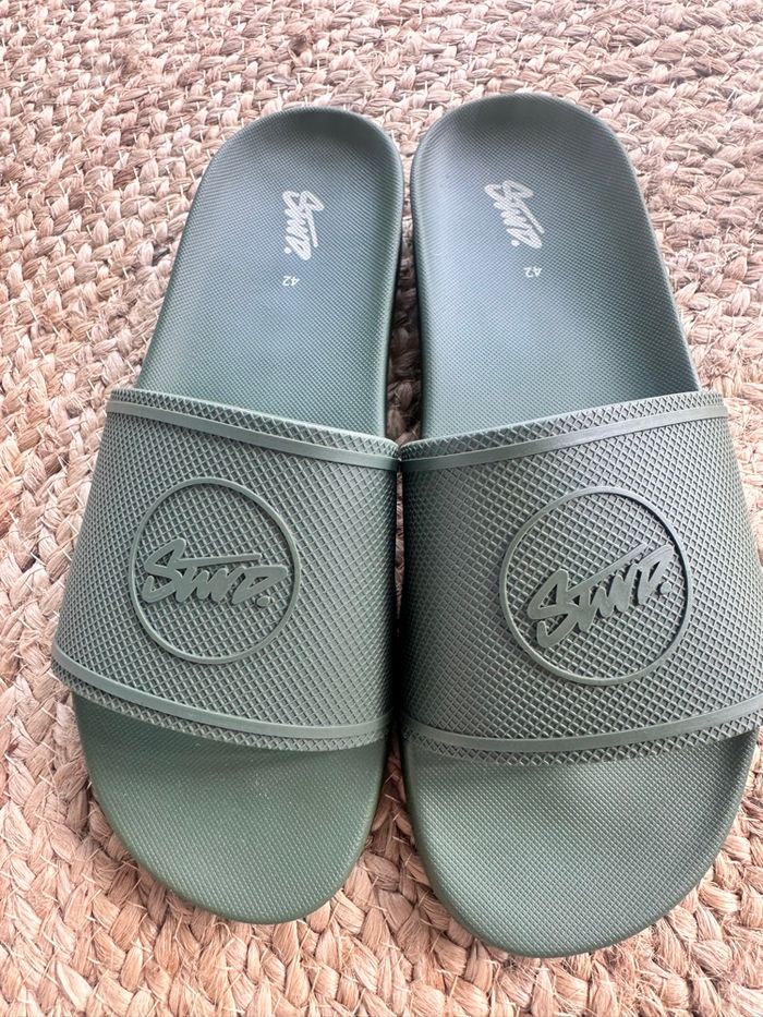Article neuf pour ces tongues T42 (petit) convient également à un 41. Aucun défauts.