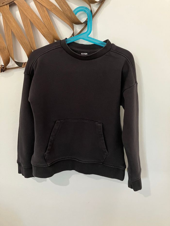 sweat col rond. Garçon taille 8 ans. Poche kangourou. Non molletonné. Couleur gris foncés ( anthracite)! En très bon état Marque kiabi