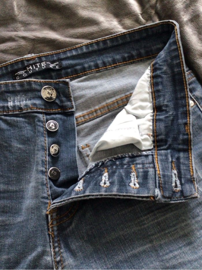 Façon troue avec motif façon reprisée sur la jambe Multi poche Fermeture par bouton