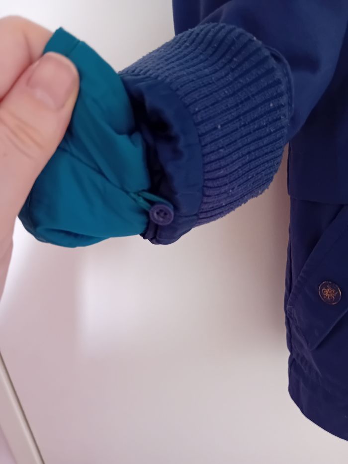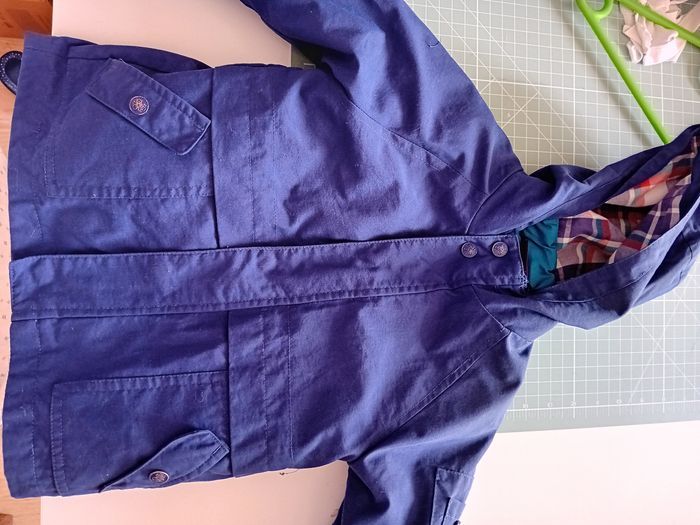 Manteau 3ans/36mois Le manteau se compose d'un imperméable et d'une doudoune qui peuvent se porter ensemble ou séparément. Seule la partie imperméable a une capuche. Avec un manteau votre enfant fait face à toutes les saisons Il couvre bien les reins de l'enfant. N'hésitez pas si vous voulez d'autres photos.