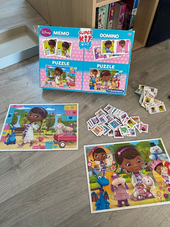 Boîte contenant 2 puzzles, 1 jeu domino et 1 jeu mémo.
