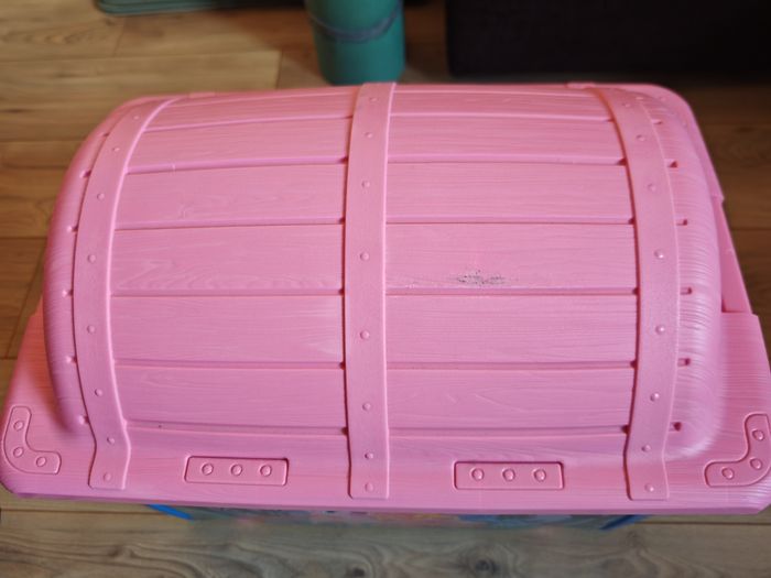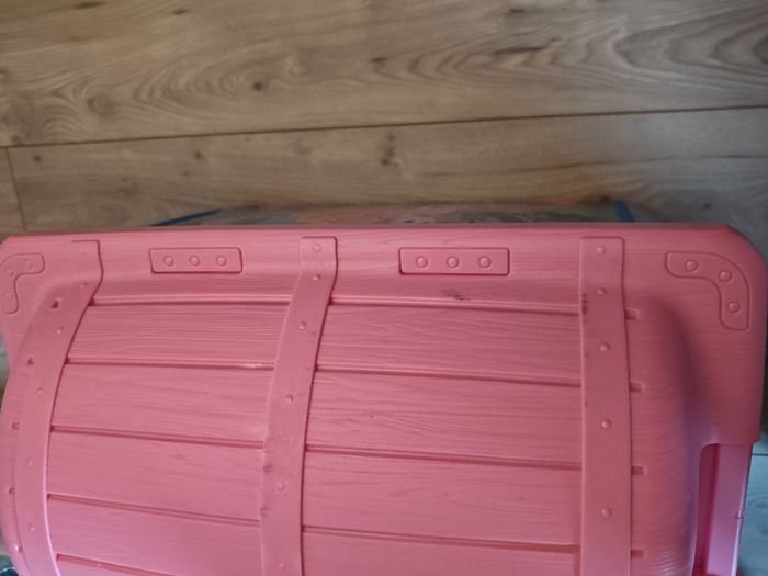 Je vends un coffre au trésor / Coffre à jouets / boite de rangement avec roulettes enfant fille Couleur : rose et bleu Motif : Licorne Quelques défauts de couleur sur le couvercle /!\ PAS D'ENVOI