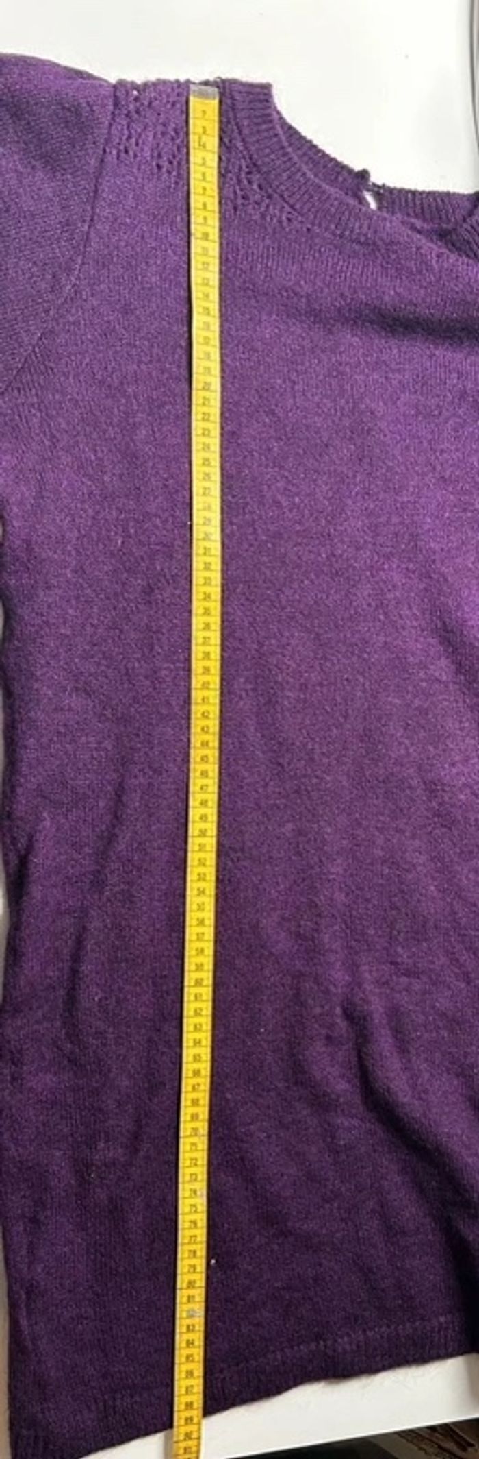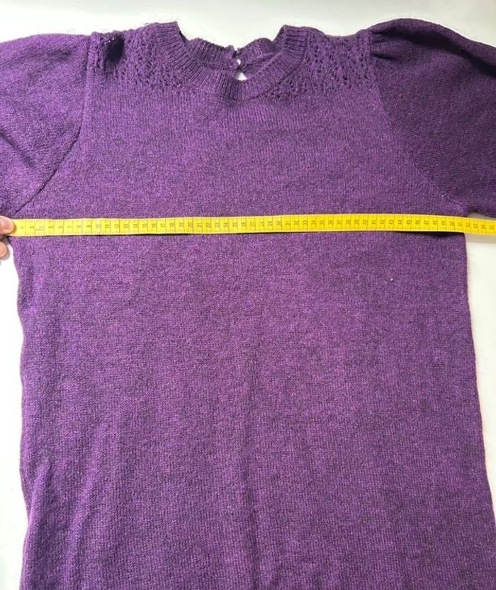 Une partie de l'étiquette est coupée, Les mesures sont en photos pour vérifier. Souvent portée, elle a de petites bouloches.. Envoi rapide et soigné