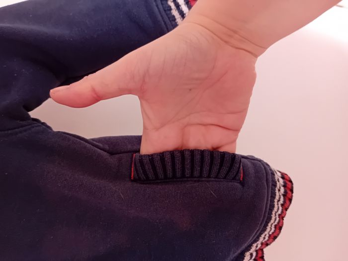 Veste doublé moumoute, bien épaisse et chaude. très peu porté, aucun défaut Se ferme par 2 rangées de boutons pressions