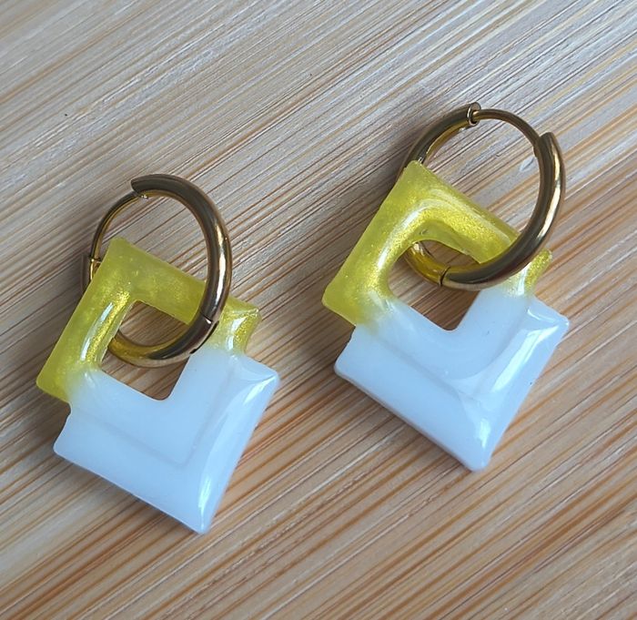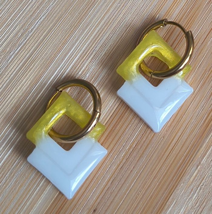 Boucles d'oreilles faites mains en résine Vendues avec créoles Idéal pour offrir