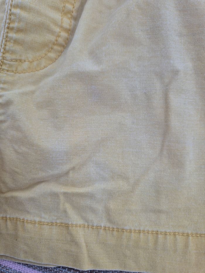 Porté souvent pour aller à la plage. Pratique pour son côté court et large des cuisses (facile à enfiler entre la crème le sable et les sorties d'eau juste avant de partir) Légèrement délavé sur certaines zones cf photos et possible tâches