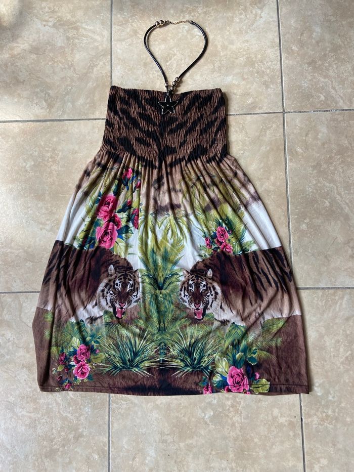 Robe beige léopard Double Y - Taille 36 S - Vintage Y2K