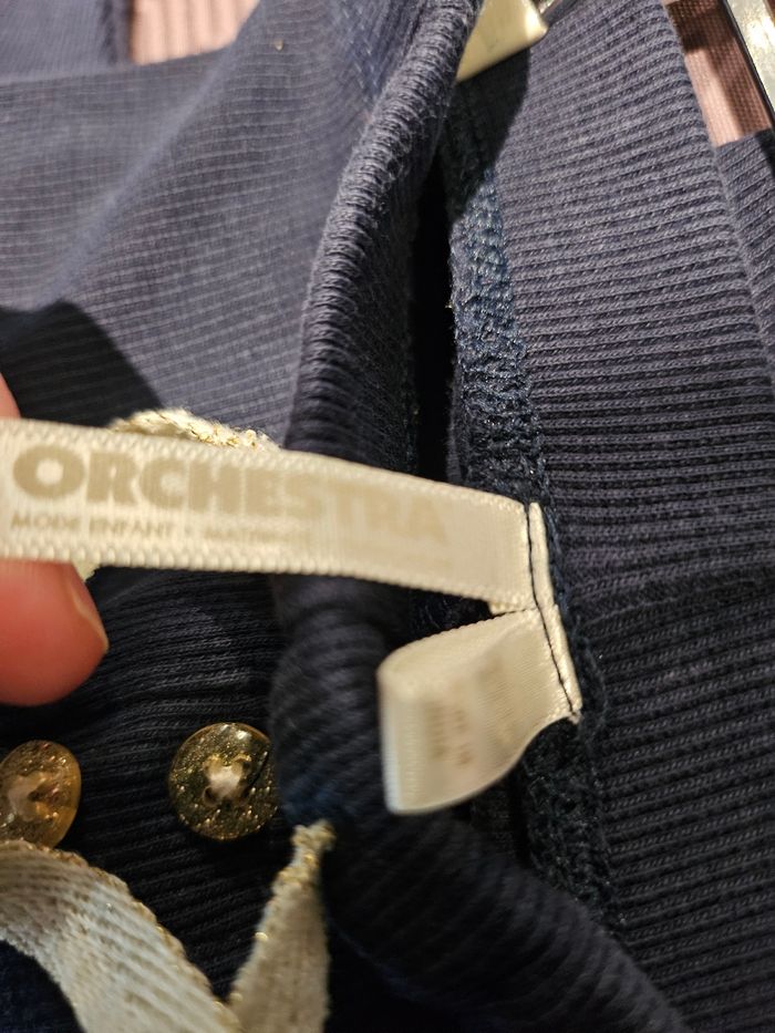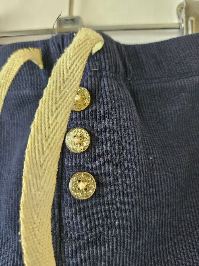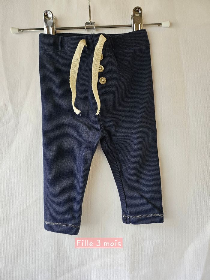 Pantalon marine avec 3 boutons décoratifs dorés et lien à nouer. Marque : Orchestra Taille: 3 mois