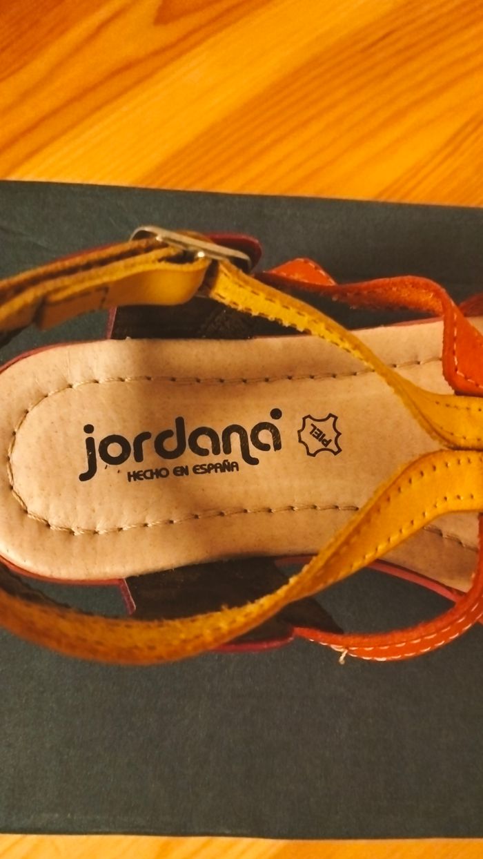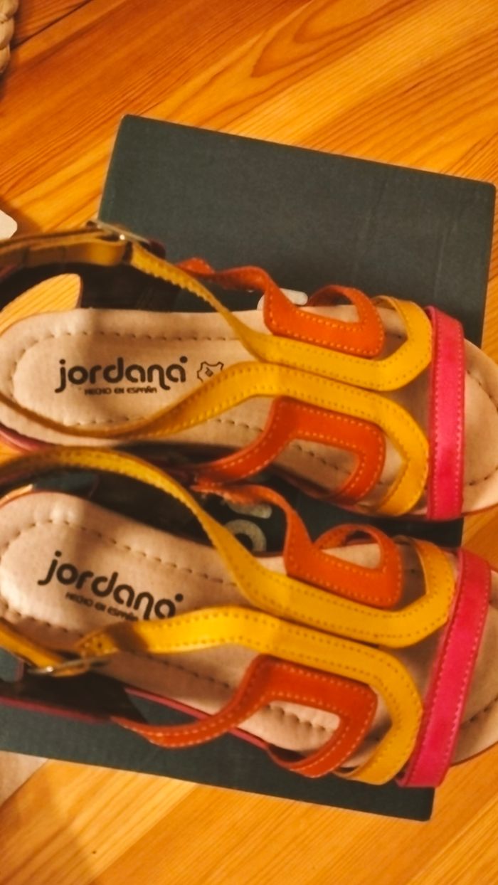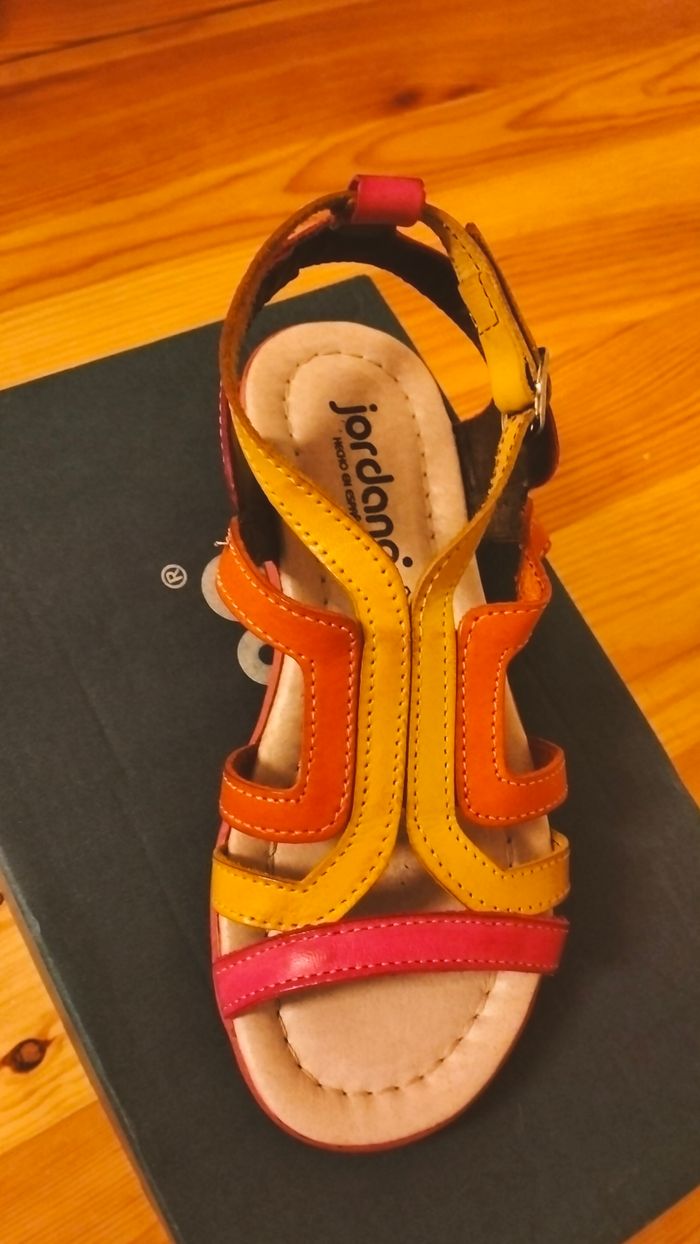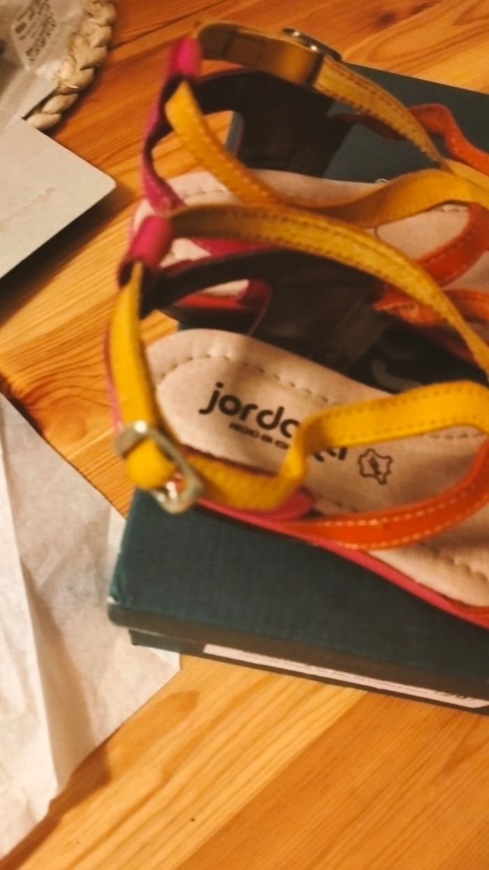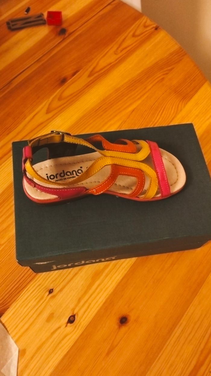 Jolie sandale en cuir neuve pointure 29. Marque Jordana, rose, orange et jaune