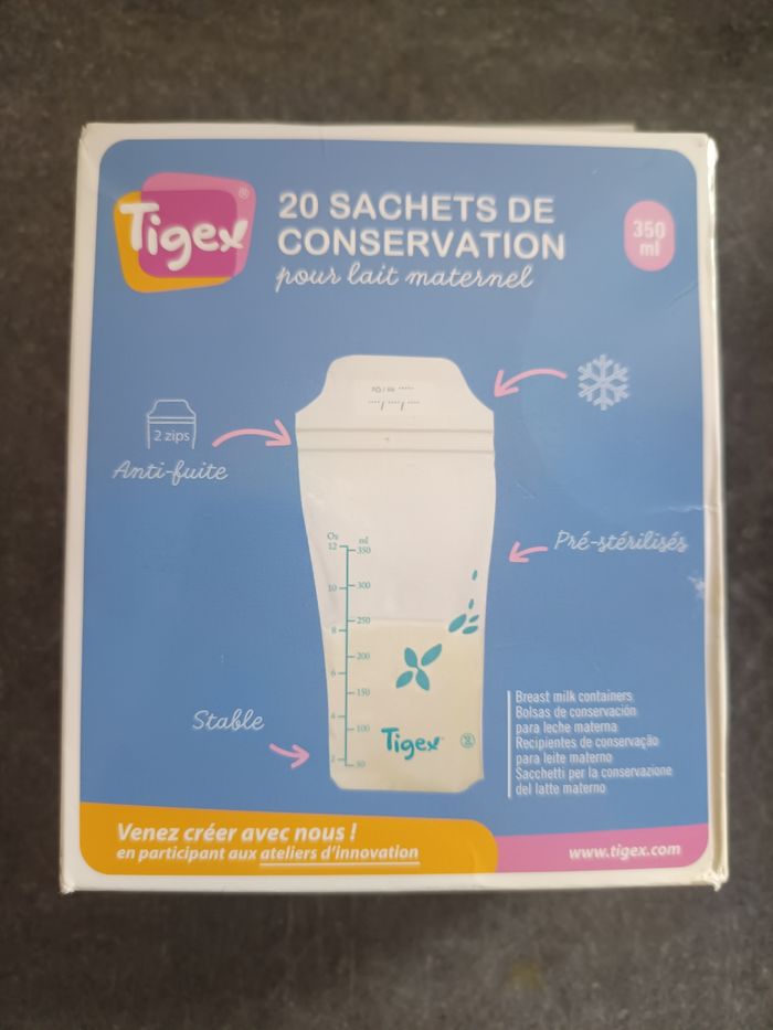 Paquet de 20 sachets de conservation de lait maternel, NEUF jamais ouvert, oublié dans le placard.
