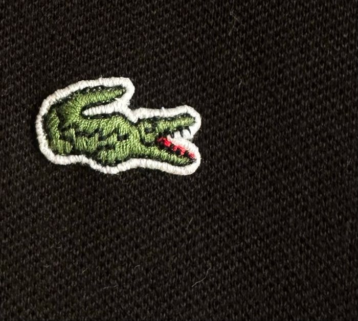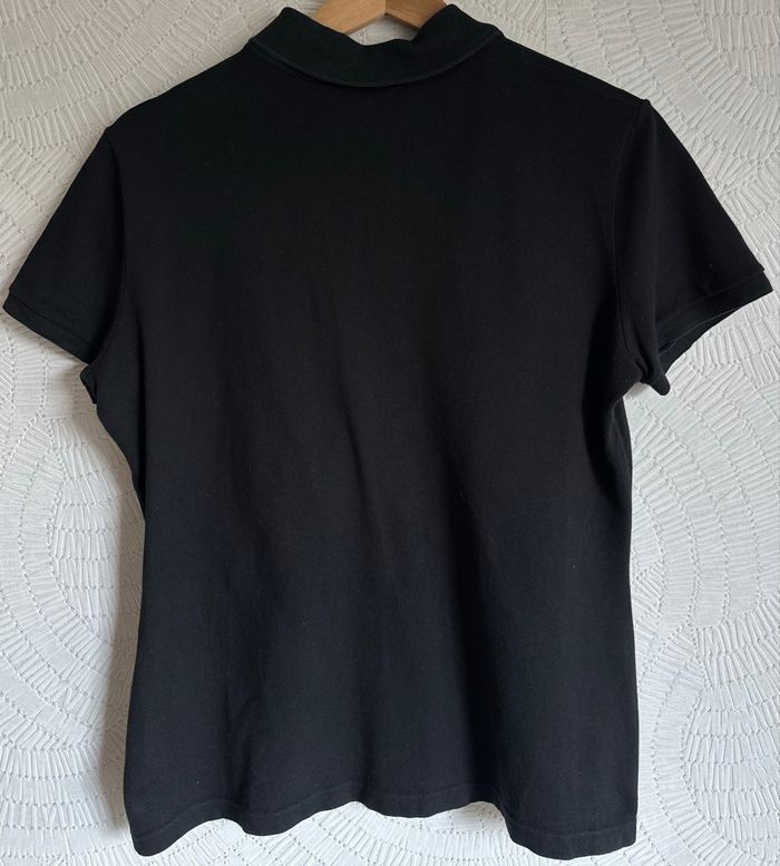 Polo Lacoste noir classique, col, manches courtes, patte de boutonnage et logo brodé. Look décontracté chic pour femme.