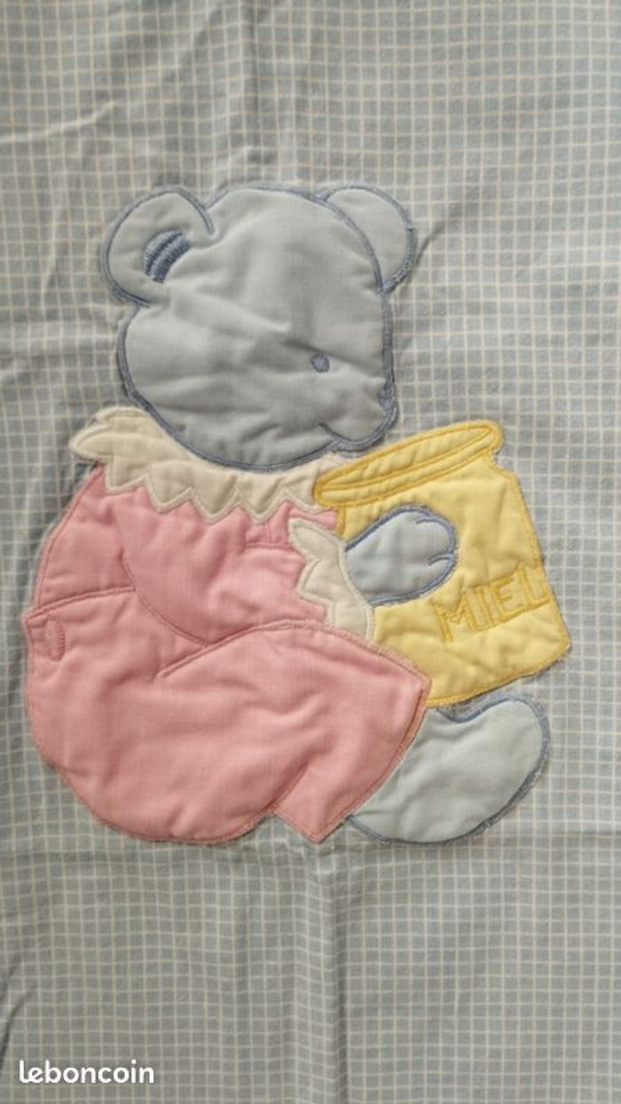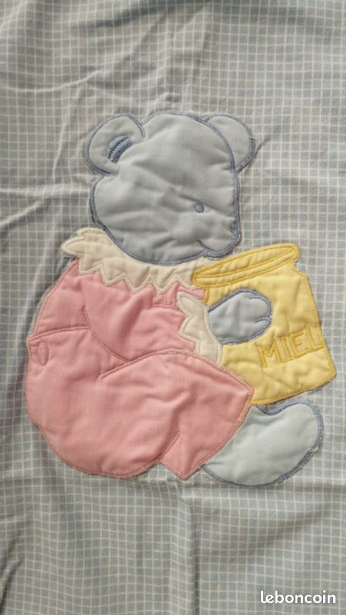 Housse de couette pour enfant de chez Jacadi. En vichy bleu ciel, et grande broderie ourson, des couleurs tendres et douces ! Très peu servi donc en très bon état, très belle qualité ! Longueur 110 sans compter le revers, sur largeur 95. Il y a aussi un drap housse que j'ai mis en vente à part !