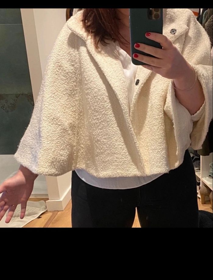 Zara Manteau Veste Cape Poncho col fausse fourrure grise taille