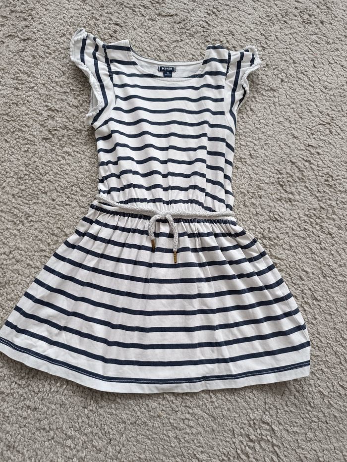 Rue ne blanche rayé bleu marine avec ceinture argenté Kiabi taille 4 ans très bon état