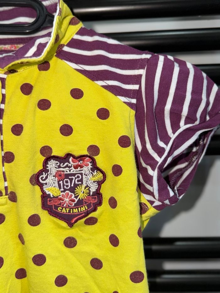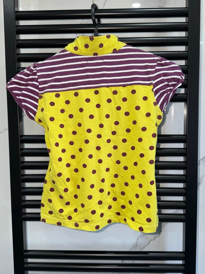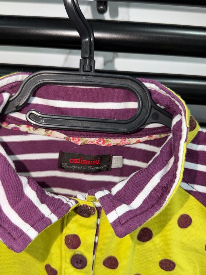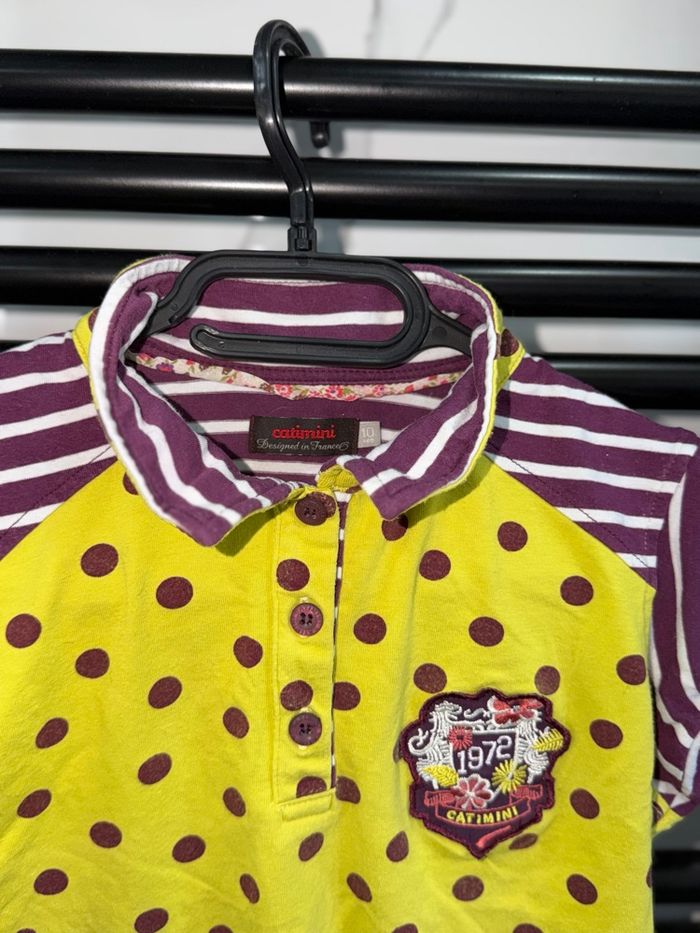 Polo catimini style rétro Coton Jaune à poil violet et rayures, violettes et blanches, portées une ou deux fois Taille 10 ans